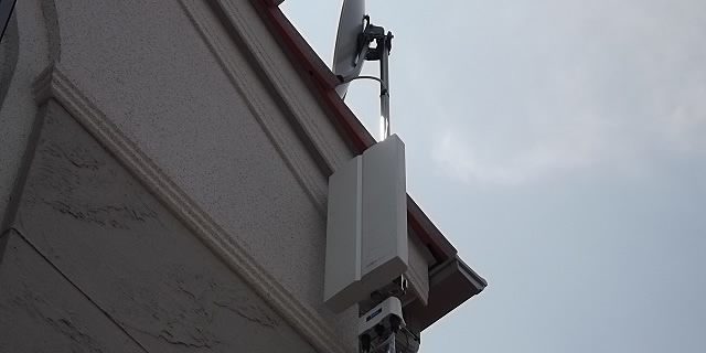 突き出し金具でマストを壁面に取付け、地デジとBSアンテナ
