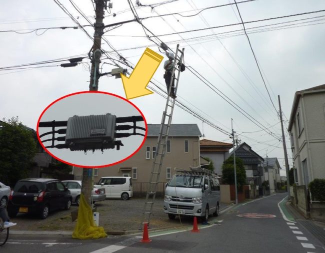 テレビ電波障害対策施設保守工事(埼玉県ふじみ野市) アンテナ施工事例, 新着情報By 日松2015年4月6日電波障害施設の加入者から映像不良の申告があり、現地訪問したところ 電柱に設置のブースターが故障していました。 すぐさま予備品と交換しました。