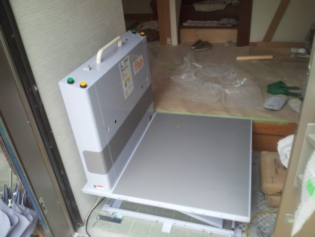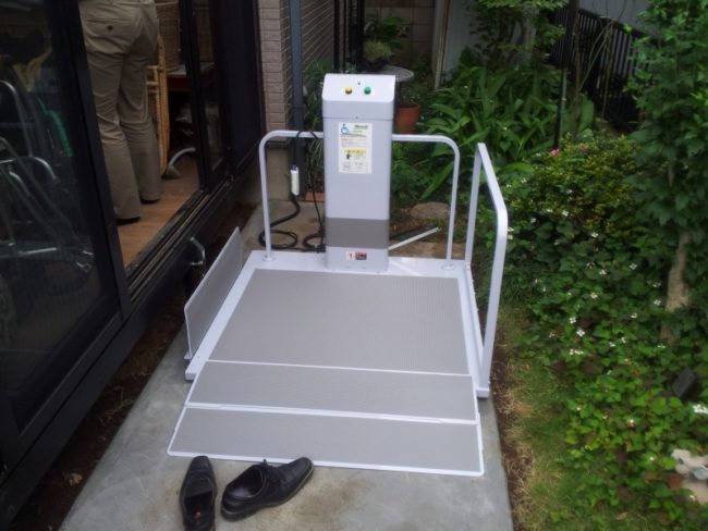 ●バリアフリー化のリフォームの一つとして玄関に設置を行いました。段差が30cm以内であれば、この段差解消機が選択出来ます。小柄なモデルです。 ●工事前の玄関です。段差解消機用の100Vコンセントを新設しま…