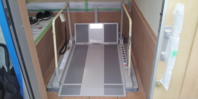 7月32015新着情報階段昇降機施工事例● バリアフリー化のリフォームの一つとして玄関に設置を行いました。段差は27cm。 ●設置前の車椅子用の玄関。左側が家族用の玄関入口となります。 Categories: 新着情報, 階段昇降機施工事例2015年7月3日 Share this post Share on FacebookShare on Facebook Share on XShare on X Post navigationPreviousPrevious post:段差解消機工事 らくーだAF-300(神奈川県川崎市)NextNext post:段差解消機工事 らくーだAS-1500(東京都練馬区)Related posts防犯カメラの死角2025年10月10日BSCS修理対応【4K8K】2021年1月20日コロナをぶっ飛ばせ!! 2020年4月26日気合の入った防犯カメラ工事!(埼玉県越谷市)2020年1月20日街ごと防犯しよう!(千葉県野田市)2019年11月29日台風の影響続く アンテナ故障対応(千葉県八千代市)2019年11月25日