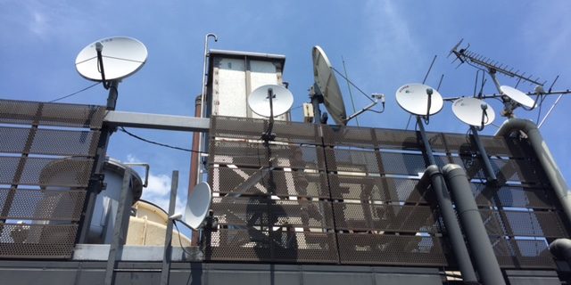 調査の結果、こちらの建物は、他の企業様も各階に入られているビルで、屋上にそれぞれアンテナを設け、